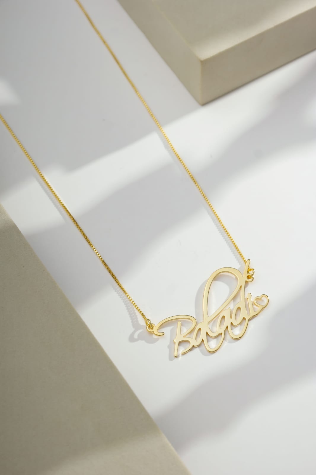 Um encontro entre sofisticação, personalidade e exclusividade. O colar Cursivo, banhado a ouro 18k, traz uma tipografia fluida, elegante e imponente, valorizando sua escrita delicadeza.