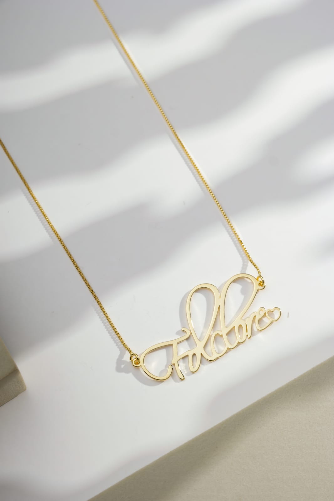 Um encontro entre sofisticação, personalidade e exclusividade. O colar Cursivo, banhado a ouro 18k, traz uma tipografia fluida, elegante e imponente, valorizando sua escrita delicadeza.